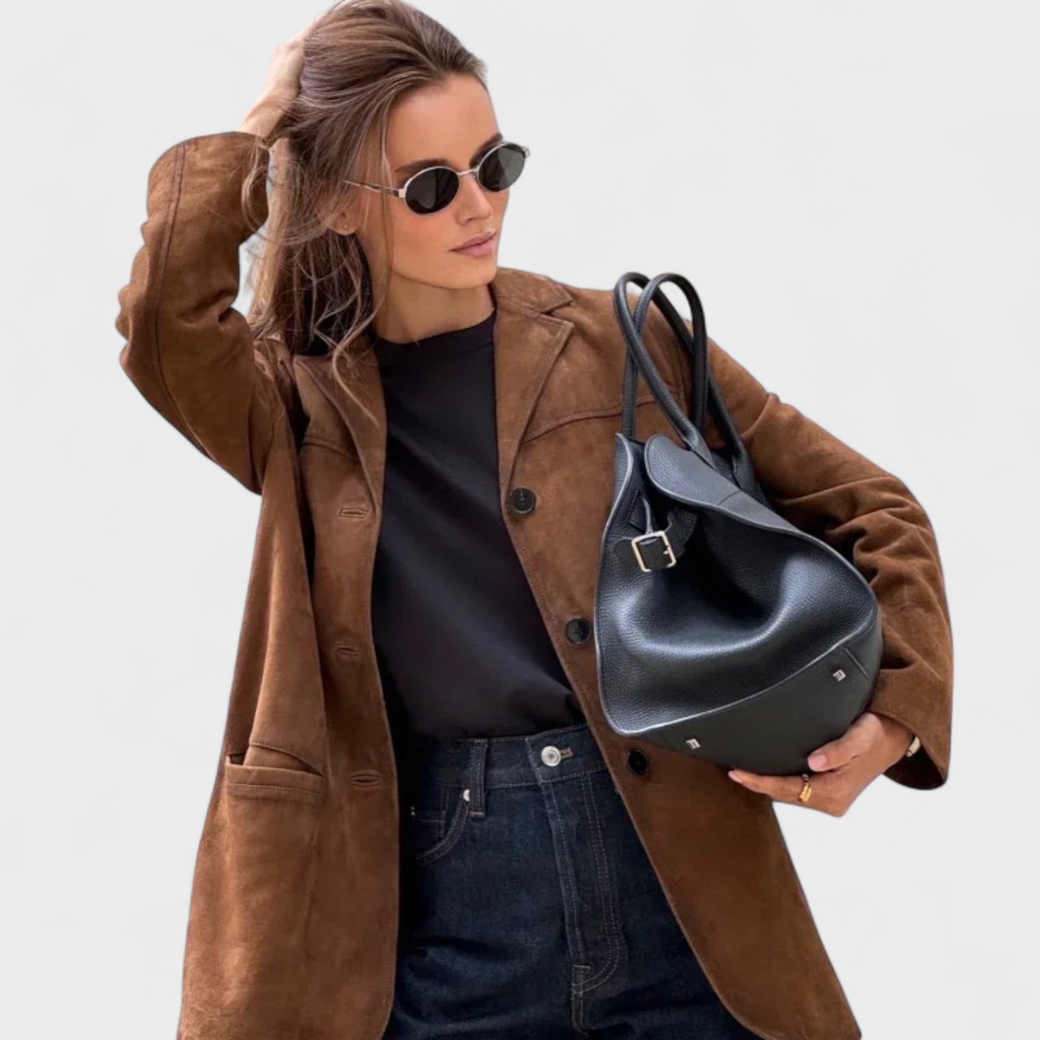 O blazer Marta une o charme atemporal do corte alfaiatado à descontração da camurça. Com um tom castanho terroso incrivelmente versátil, ele adiciona personalidade e sofisticação a qualquer look — desde o jeans casual até a calça de alfaiataria. Com uma estrutura perfeitamente ajustada, é a peça essencial que transforma seu visual com facilidade.