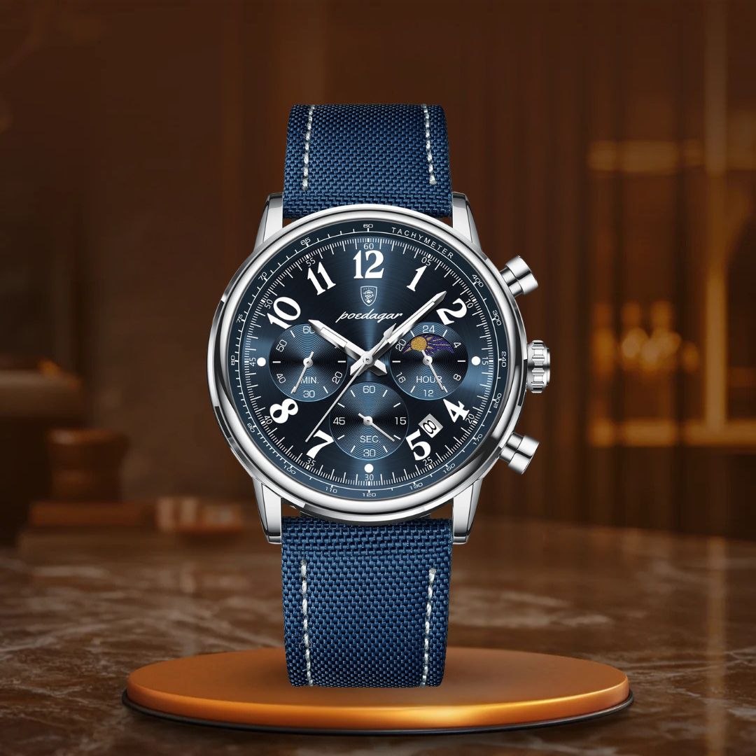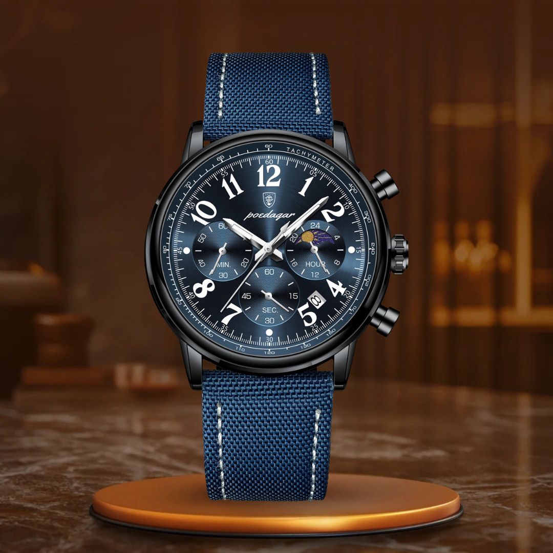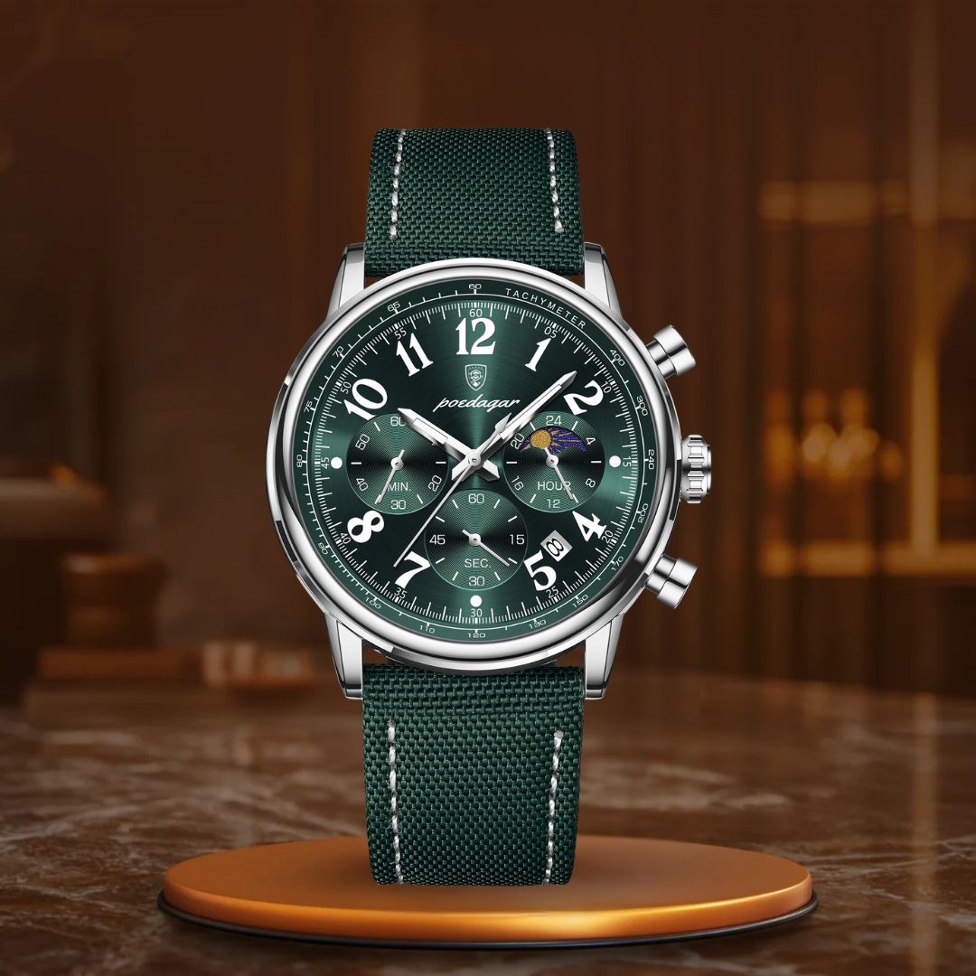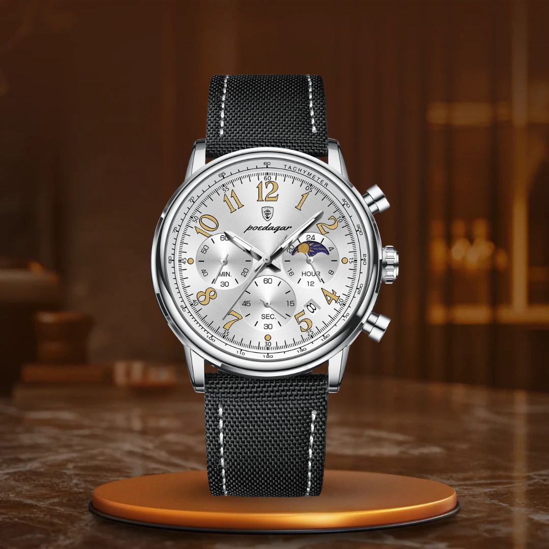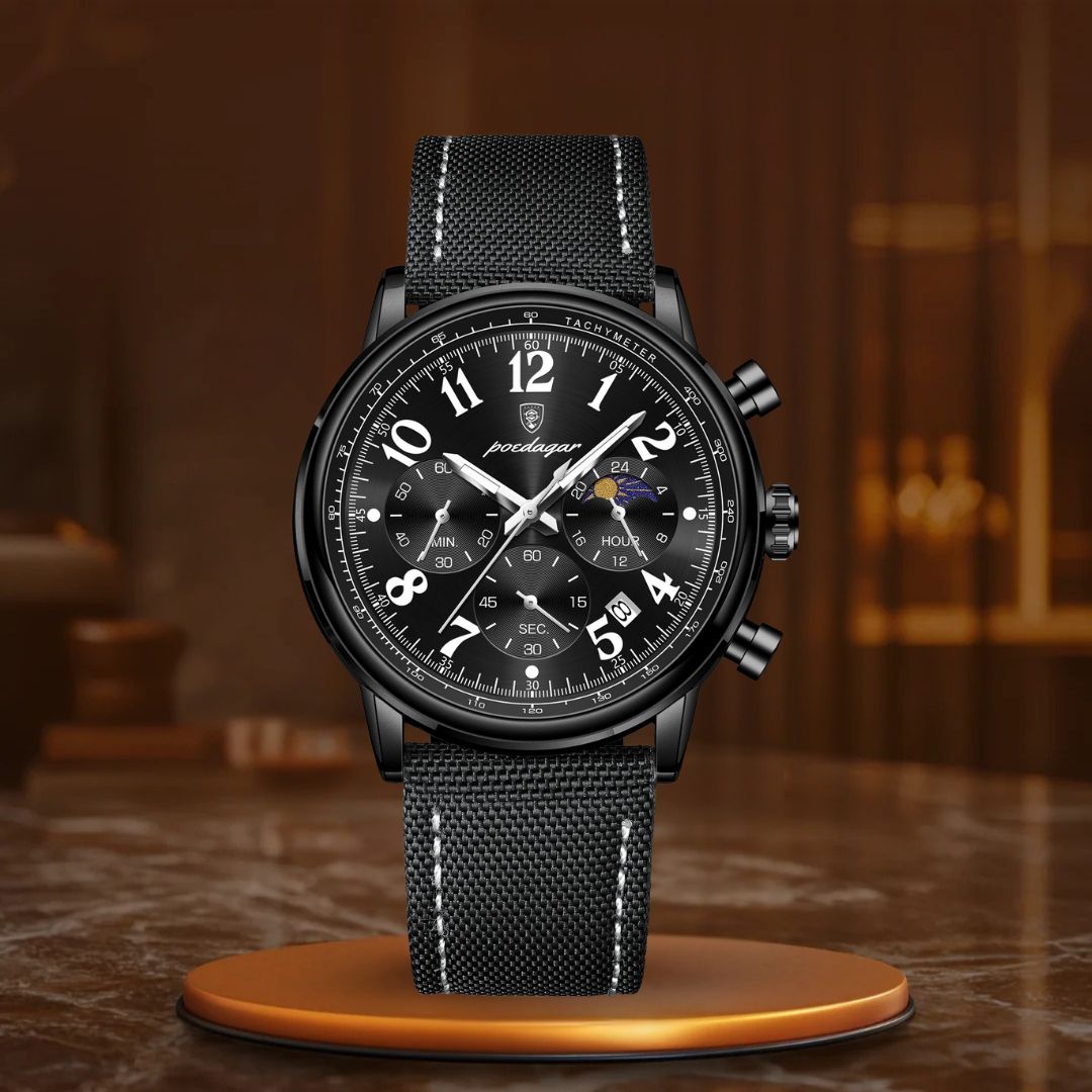 O relógio cronógrafo de luxo é o complemento ideal para aprimorar qualquer look. Com sua sofisticada bracelete de couro e design elegante de cronógrafo, este relógio não apenas impressiona pelo visual – ele também entrega desempenho excepcional. Seu mostrador luminescente permite que você veja a hora com facilidade em ambientes com pouca luz, enquanto o movimento de quartzo de alta precisão assegura que você esteja sempre pontual, não importa onde a vida o leve.